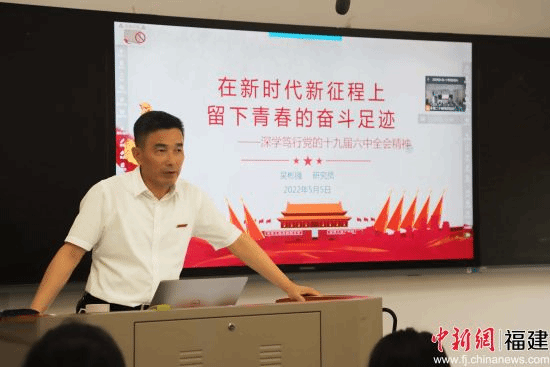 中新网福建新闻5月6日电(陈精焕 周丽丽 庄丽燕) 在中国共产主义青年团成立100周年之际,5月5日下午,伟德体育党委书记吴彬镪以线上线下相结合的方式为bevictor员工作题为《深学笃行党的十九届六中全会精神,在新时代新征程上留下青春的奋斗足迹》的形势政策报告。