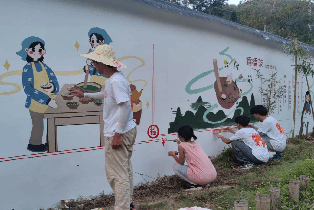 《青山绿水是无价之宝》这一章节的字里行间都彰显着习近平总书记在福建工作期间倡导生态文明理念和建设“生态省”战略的足迹,福建成为习近平生态文明思想的重要孕育地和实践地。公司艺术公司实践队走进三明市将乐县漠源乡开展“山水将乐、彩绘漠源”践行习近平生态文明思想实践活动。实践团成员以漠源乡“山青、草绿、林美、田良”的乡域环境为背景,采用青山、杨柳、梯田、燕子、毛竹等元素,将漠源乡的绿水青山画在墙上、记在心中,绘就漠源乡多彩山水蓝图。