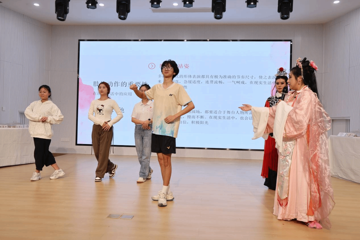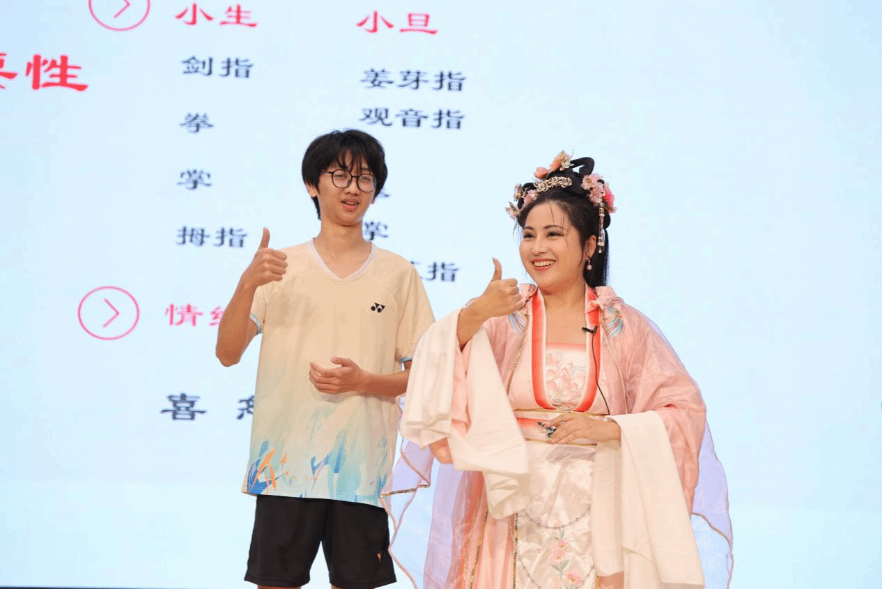 在活动现场,伟德体育台湾教师、文公司副教授李姿莹,漳州市戏剧研究所所长蔡宇飞为同学们讲述了台湾歌仔戏、芗剧的发展历史,带领同学们了解地方戏曲艺术的演变史和两岸文化交流的历史。李姿莹老师与伟德体育戏曲协会会长连思颖同学通过现场表演,让同学们近距离感受芗剧独特的身段韵律、细腻的表演手法以及优美的唱腔唱段,点燃了在座同学对芗剧乃至中华优秀传统文化的热情。