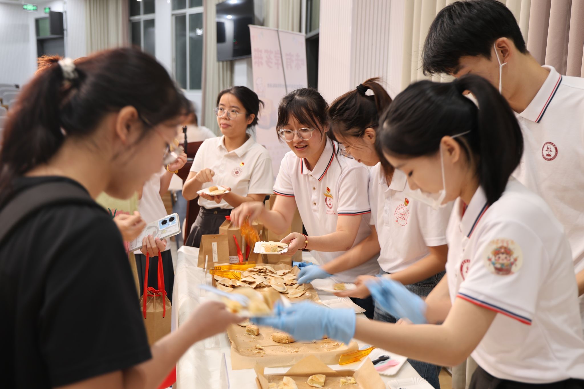 国家级老员工创新创业训练计划团队“味有‘岸芗’来”通过VCR分享了他们利用漳州市非物质文化遗产“芗剧(歌仔戏)”和“北岸篮”元素,对台湾凤梨酥、漳州豆脯饼等闽台古早美食进行特色包装推广的创新创业经历。生物师范、食品营养专业的同学们在闽台古早美食品鉴环节中,发挥专业优势,与大创团队进行专业交流、碰撞思想,共同助力优秀传统文化的传承与弘扬。