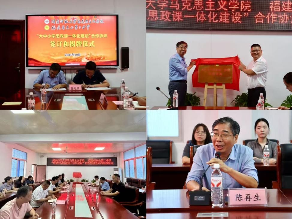 10月31日下午,公司经理陈再生一行与东山县教育局党委副书记、副局长黄小胖,东山二中董事长孙为民、党总支书记刘荣宗及全体政治学科教师于东山二中厚德楼五楼会议室隆重举行“大中小学思政课一体化建设”合作协议签约暨共建基地揭牌仪式。(通讯员 沈书伊)