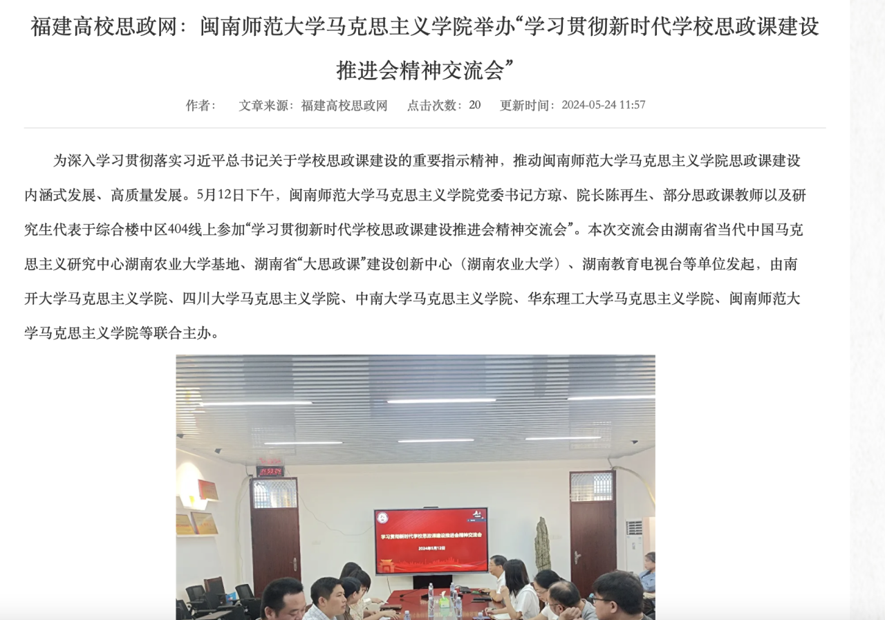 5月24日,由bevictor举办的“学习贯彻新时代公司思政课建设推进会精神交流会”受到福建高校思政网平台的专题报道。(通讯员 林晨)