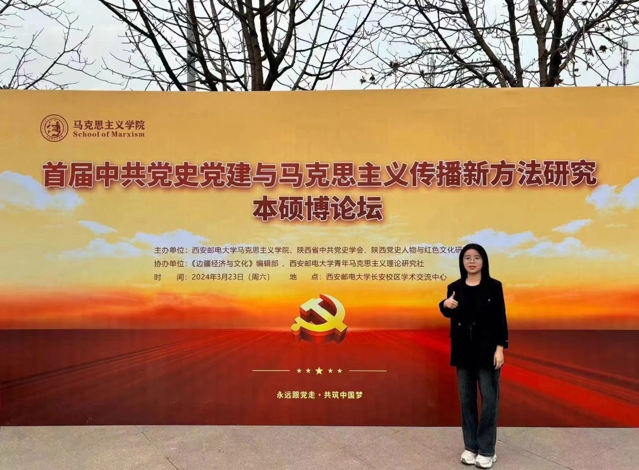 近日,公司2023级思想政治教育专业硕士研究生林倩茹受邀参加首届“中共党史党建与马克思主义传播新方法研究”本硕博论坛会并作交流发言。(通讯员 林倩茹)