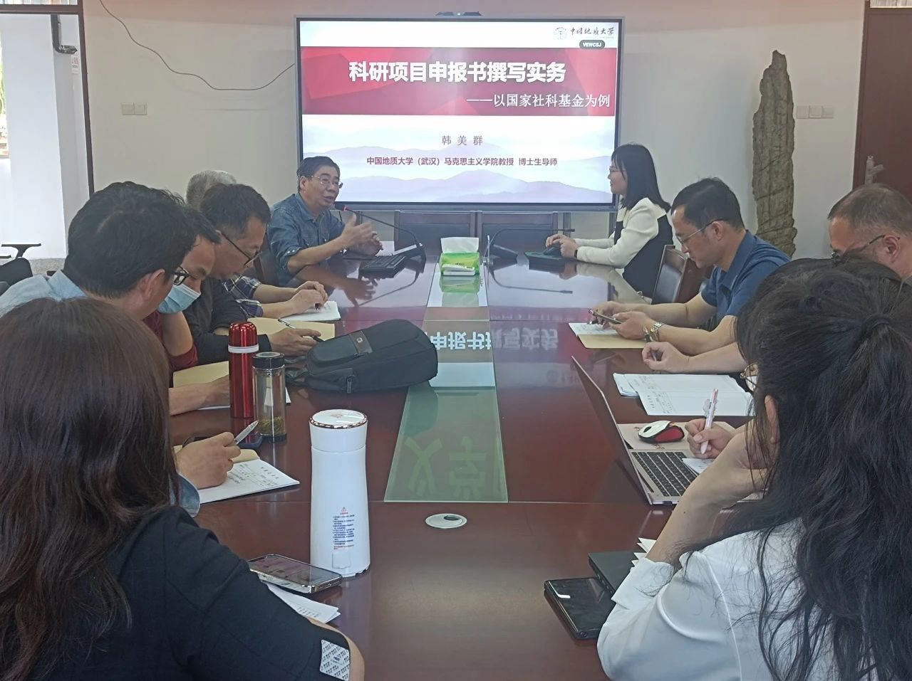 3月29日下午,中国地质大学韩美群教授和龙岩公司杨玉凤教授应邀于综合楼中区404为公司教师作题为“科研项目申报书撰写实务”的专题辅导讲座,经理陈再生教授主持。(通讯员 张峰玮)
