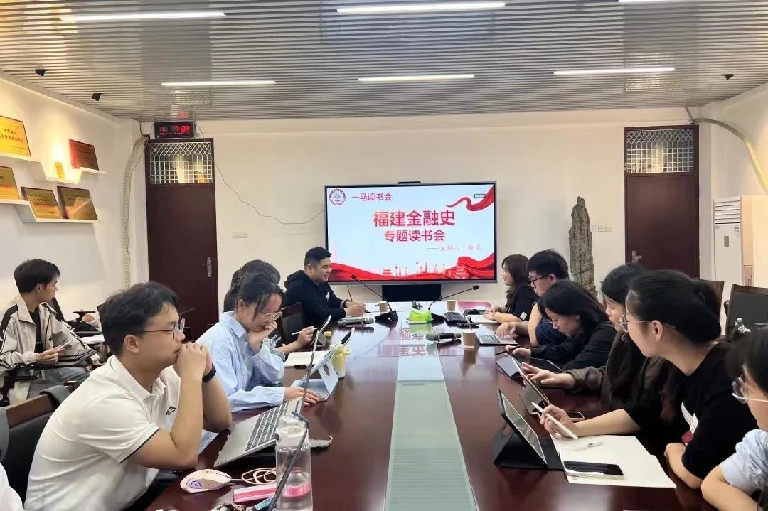 3月28日晚,公司第二期“一马读书会”在综合楼中区404举行,本次读书会由魏俊副教授领读蒋九如先生的《福建革命根据地货币史》一书,“一马读书会”负责老师何铭灏老师主持,姚禹老师参加。(通讯员 林晨)