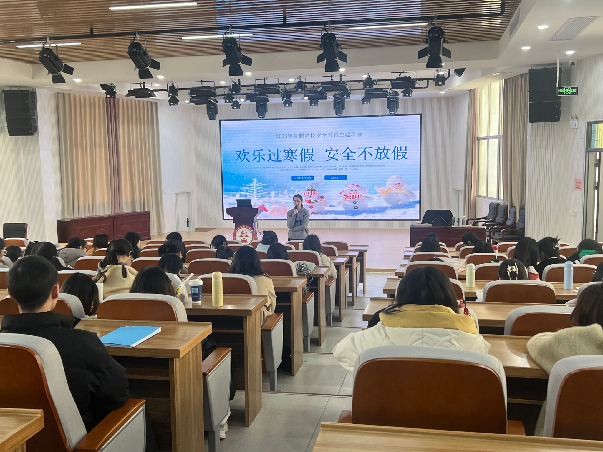 1月7日,公司在公司礼堂开展“欢乐过寒假,安全不放假”离校前安全工作会,会议由辅导员沈书伊、任程龙主持,全体本科生参加。(通讯员 沈书伊)