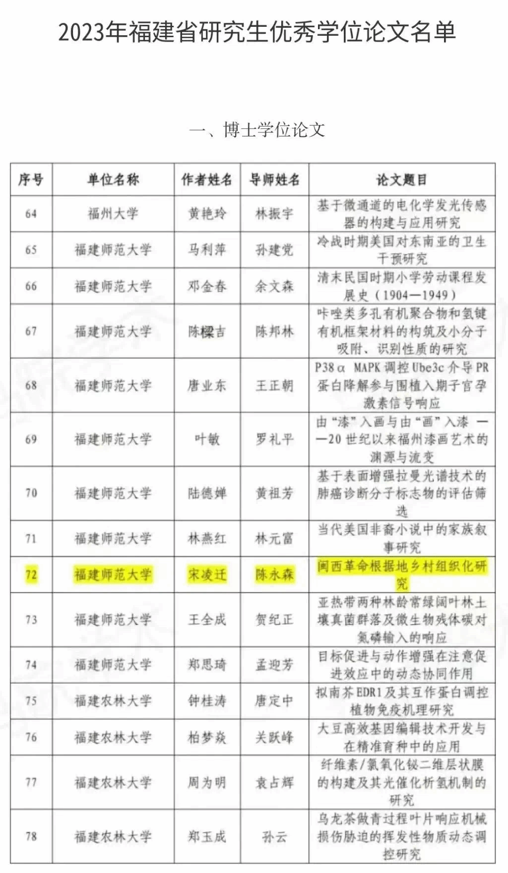近日,福建省学位委员会办公室《关于公布2023年福建省研究生优秀学位论文评选结果的通知》文件下发,公司教师宋凌迁的博士学位论文获评2023年福建省研究生优秀研究生学位论文。(通讯员 崔梓祎)