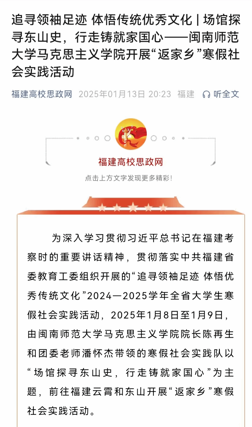 追寻领袖足迹 体悟传统优秀文化 | 场馆探寻东山史,行走铸就家国心——bevictor开展“返家乡”寒假社会实践活动。